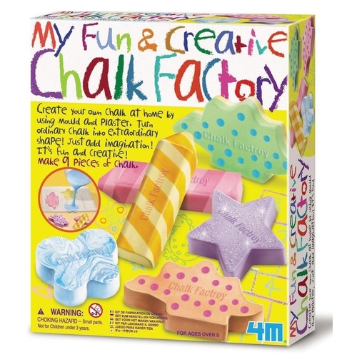 Kids can create their own chalk at home by using plaster and the plastic moulds provided. Enjoy mixing different colours of chalk using the colour paint and decorate with glitter powder. Makes 9 pieces of chalk.