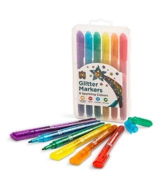 Educational Colours Glitter Markers lay down bright and sparkling colours! Our washable markers are child safe with non-toxic, food grade, water-based ink and child safe ventilation caps. Vibrant colours give your creations a glittery shine!