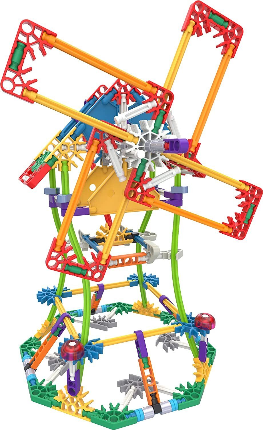 This kids construction toy's snap-fit pieces stick together securely and can be easily reassembled into other creations, helping to develop hand-eye coordination, fine motor skills, problem-solving skills, and spatial awareness, while providing an understanding of STEM subject.