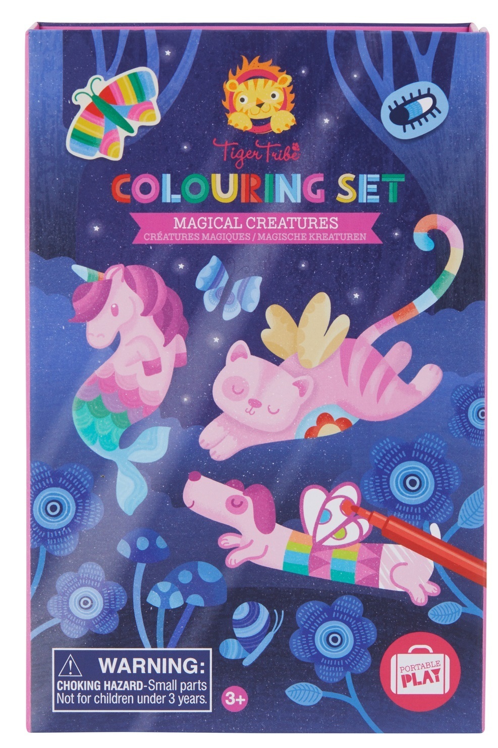 Filled with fantastical mernicorns, flying puppies and rainbow coloured kittens - Colouring Set - Magical Creatures is jam packed with activities, coloured markers and stickers.