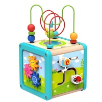 This fabulous activity centre will provide hours of fun and stimulating play for toddlers as they explore a variety of activities. Ideal multi-functional toy for toddlers as it has 5 different sides of activity learning including an abacus for counting and labyrinth for fine motor skills. Made with good quality wood. Non-toxic paint used.