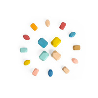 16 wooden piece set of natural and coloured stacking stones. Learn to stack and balance as you create designs. Very tactile in a mixture of coloured and natural finish.